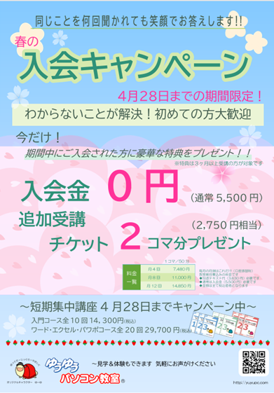 春の入会キャンペーン(4月28日までの期間限定!)